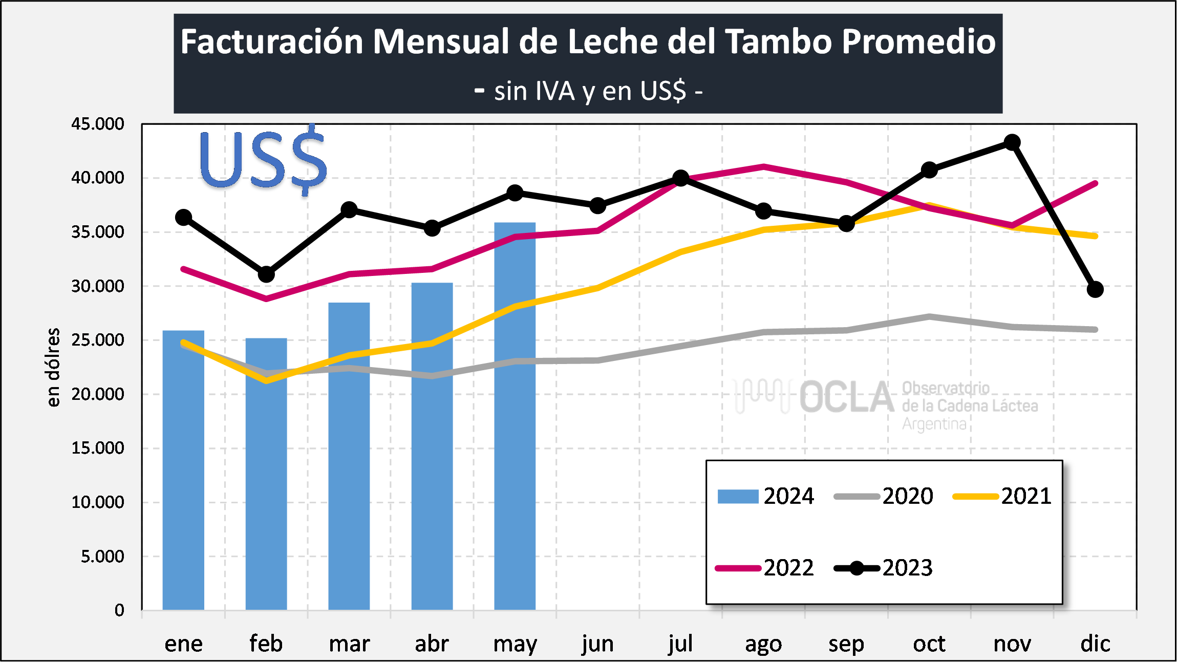 Nota: Se toma la producción mensual del tambo medio que surge de SIGLeA-LUME, y se la multiplica por el dólar mayorista BCRA.