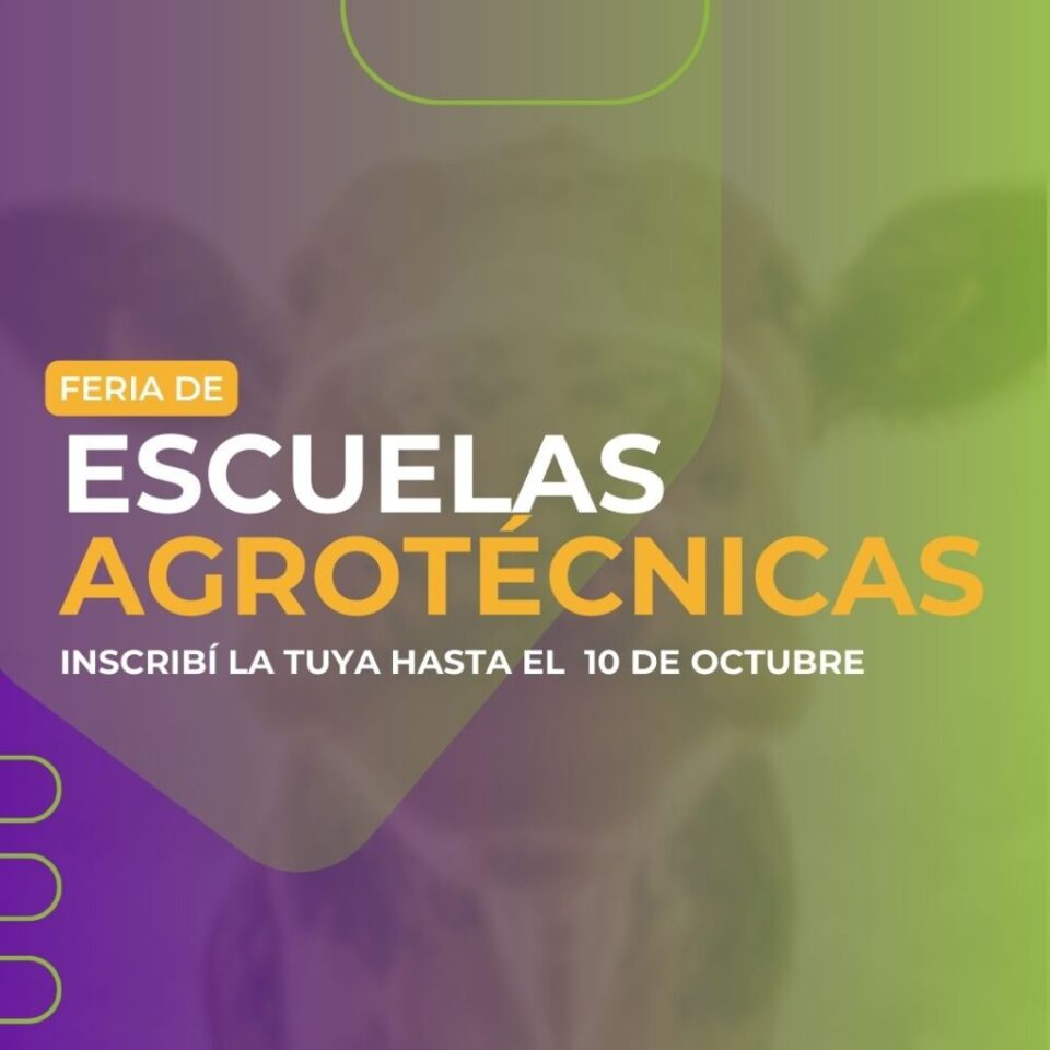 Además, te invitamos a visitar la Feria de Escuelas Agrotécnicas, que se llevará a cabo en el Centro Cultural La Vieja Usina, los días martes 15 y miércoles 16 de 9:00 a 21:00 hs. Conocé lo que están haciendo las escuelas de la región y adquirí productos de elaboración propia.