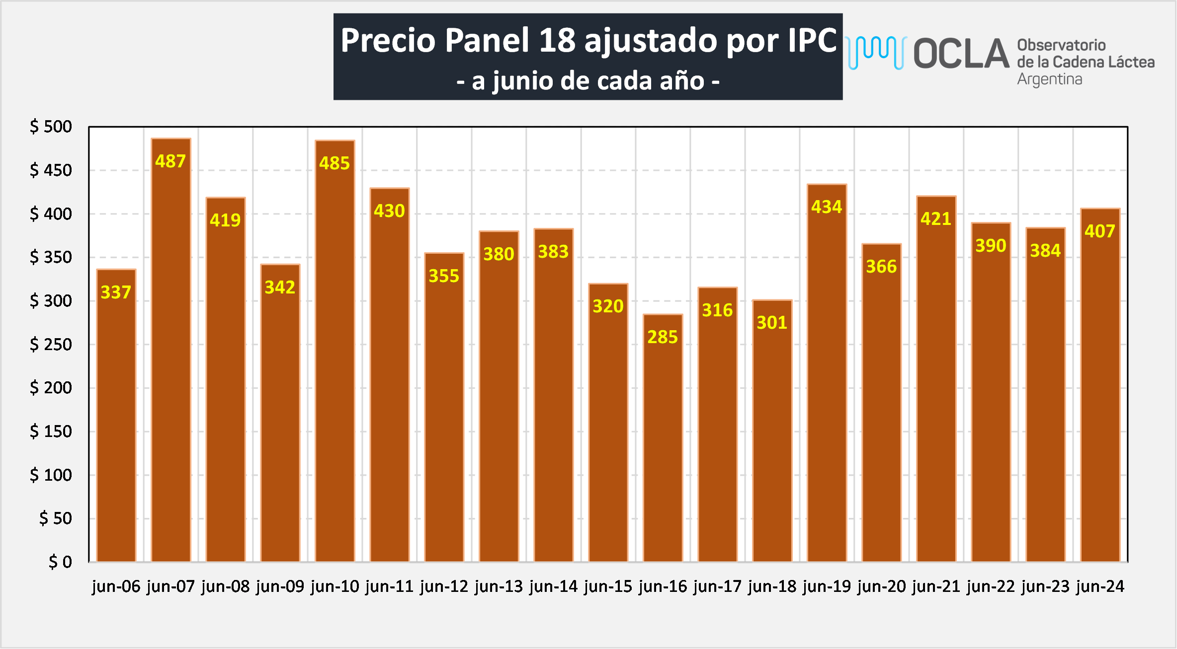 Viendo exclusivamente el precio de los meses de junio de los últimos 19 años, junio de 2024 sólo tuvo por encima 6 años, y es el más alto junio de los últimos 3 años.